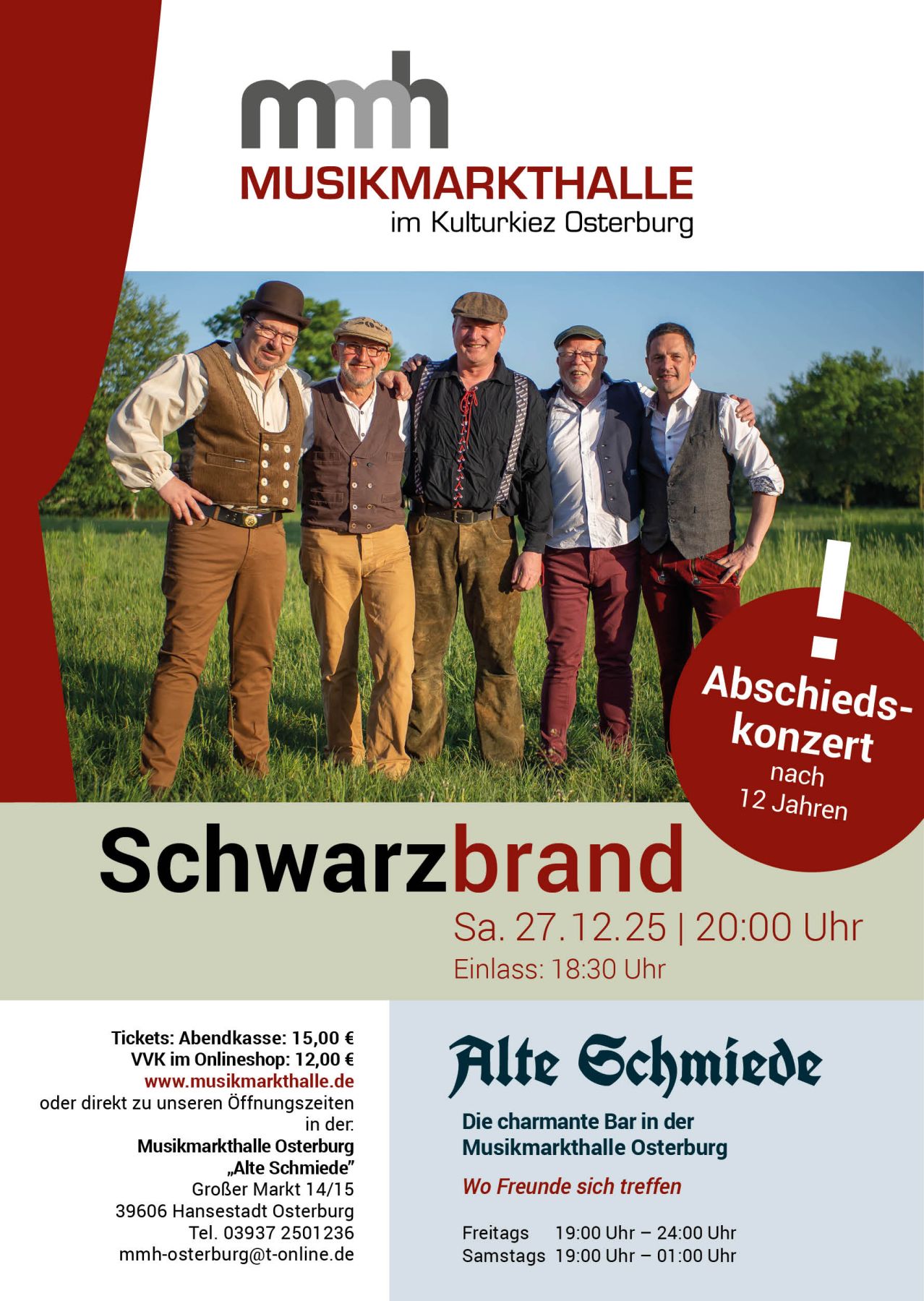Compre boletos en línea. Venta anticipada del 29.10.2025 al 27.12.2025 Entradas para SchwarzbrandAbschiedskonzertMusikmarkthalle OsterburgAdmisión a las 18:30 horas